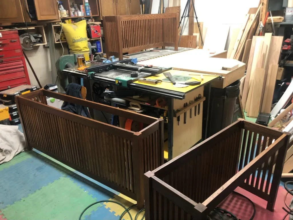 Most of the furniture I build is in a prairie/mission style, and the details of these meant I hand crafted a lot of individual pieces before assembling them.